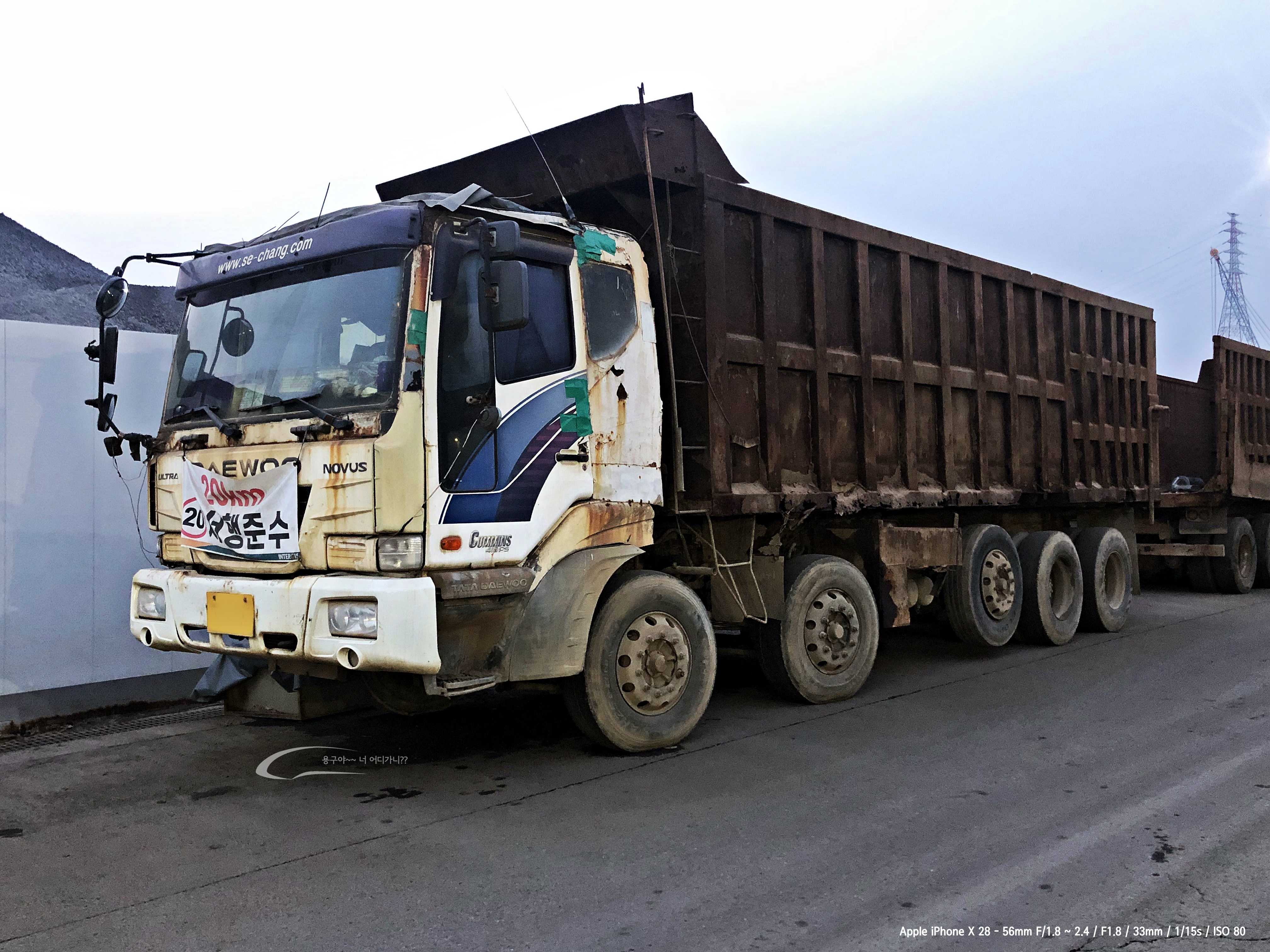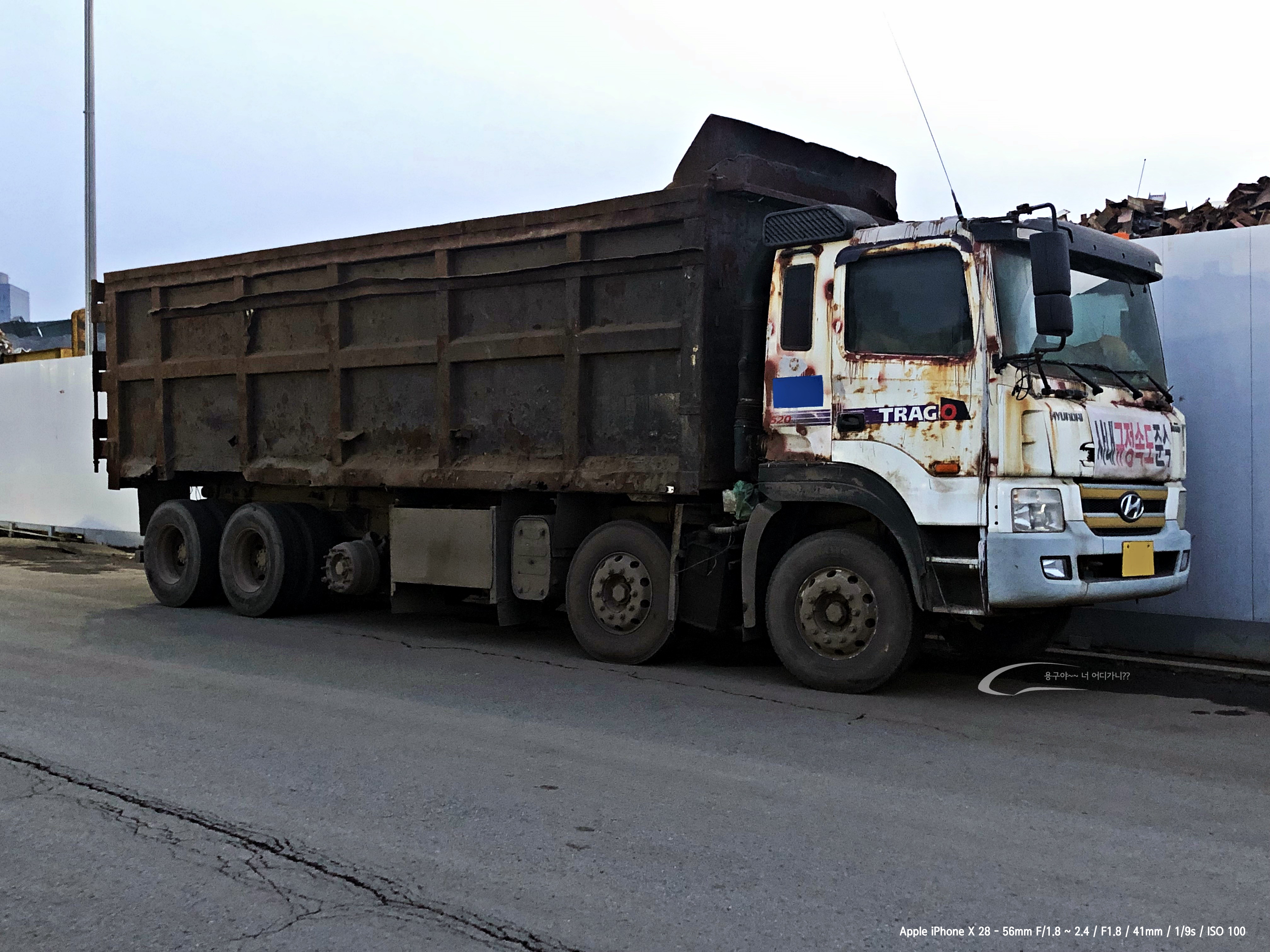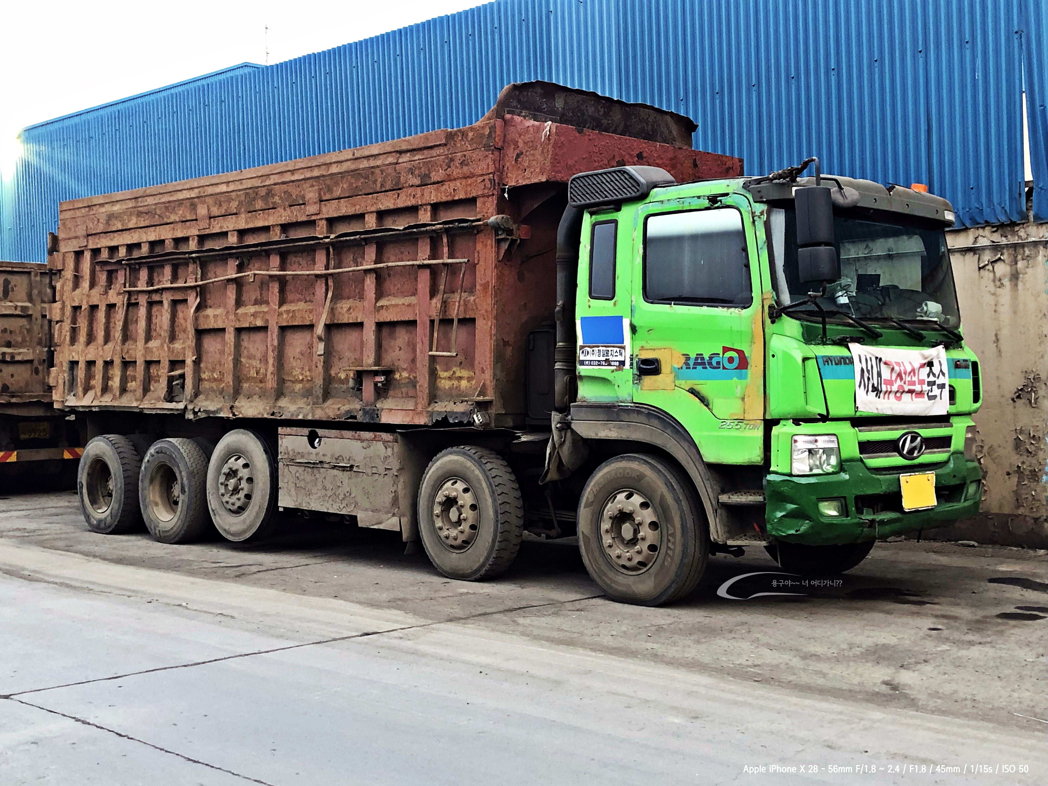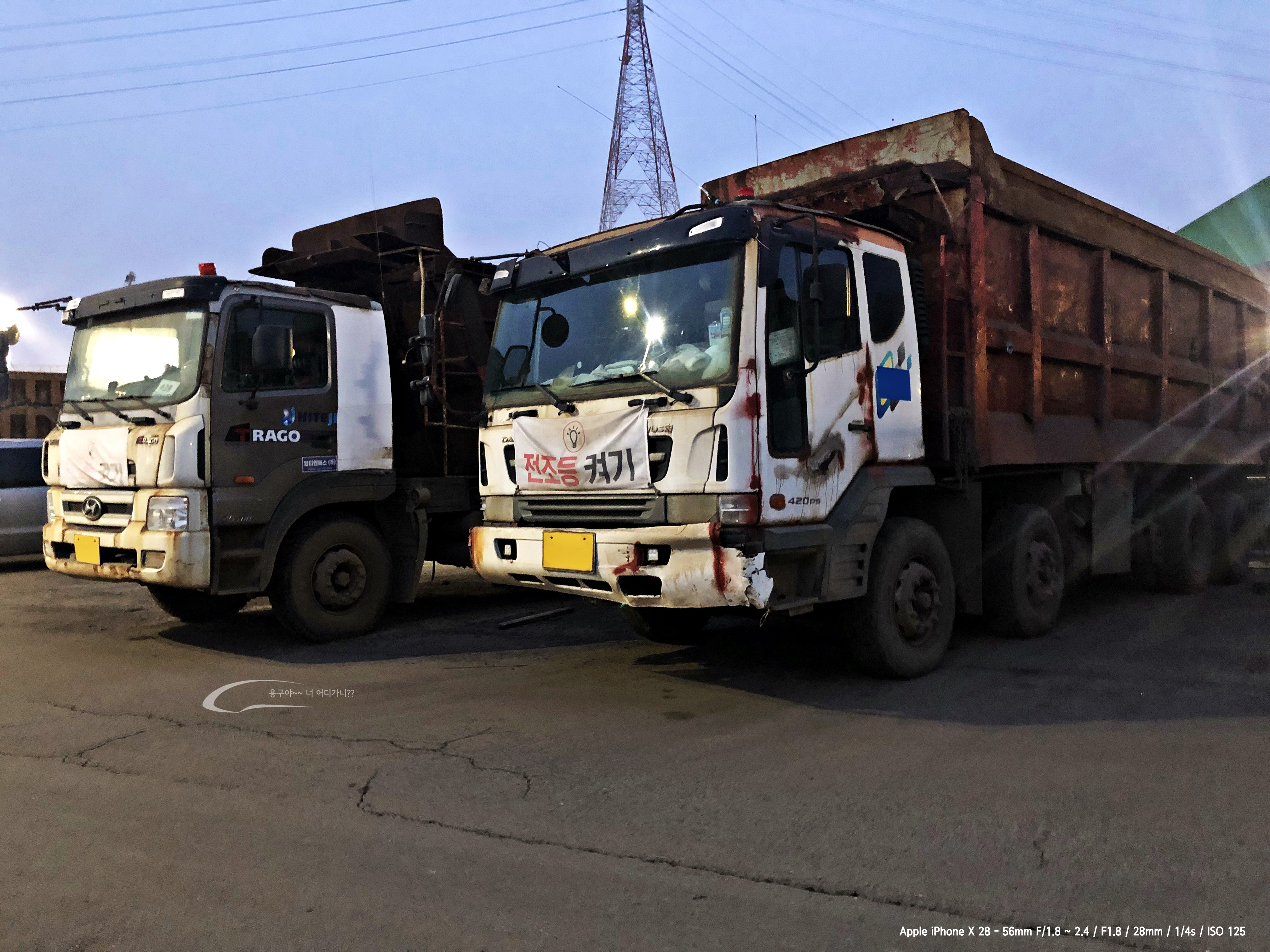인터넷 지도 거리뷰 사진같이 북항 고철부두와 제철소 왔다갔다 운반하는 고철전용 트럭들이 고철을 싣고 쏟고 반복하니까 적재함은 이미 걸레짝이 되고 캡이 고철에 긁히고 찌그러지니까 상태가 걸레짝이 되었다.